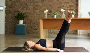 • Lie on your back with one leg extended toward the ceiling.
